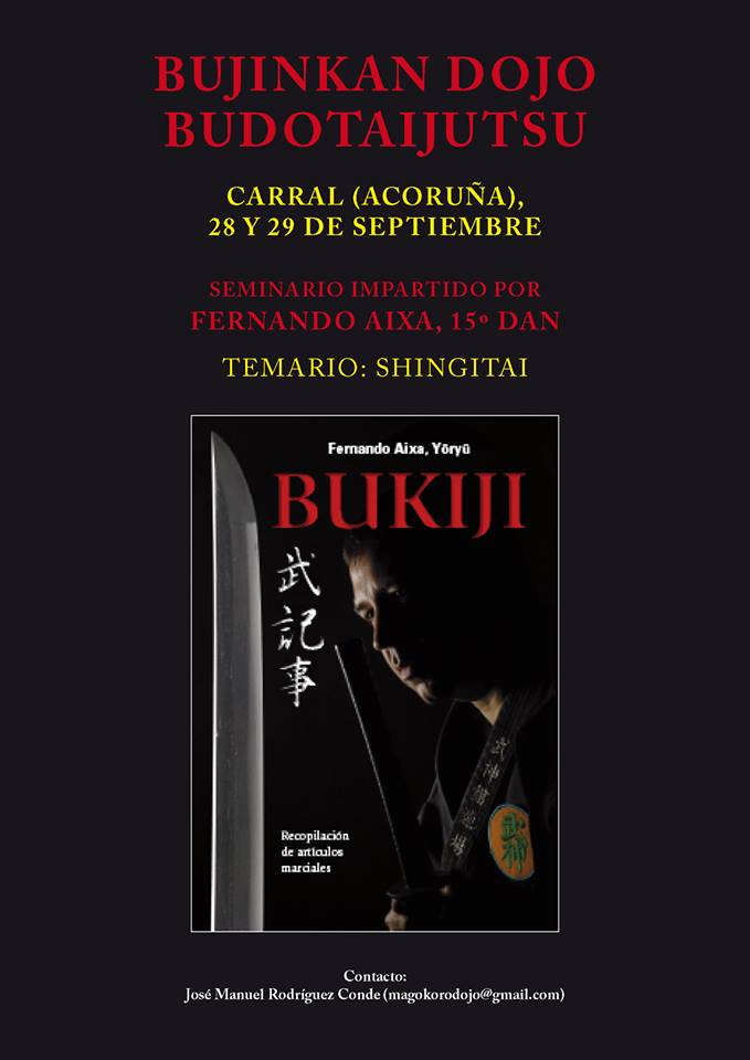 Seminario de Fernando Aixa en Carral (A Coruña) 19/09/2013bjkakureblogDeja un comentario Tras el lapsus veraniego, retomamos la actividad en el blog para anunciar (y recomendar) el seminario organizado por el Magokoro Dojo, impartido por Fernando Aixa, y que se celebrará en Carral (A Coruña) los próximos días 28 y 29 de septiembre.