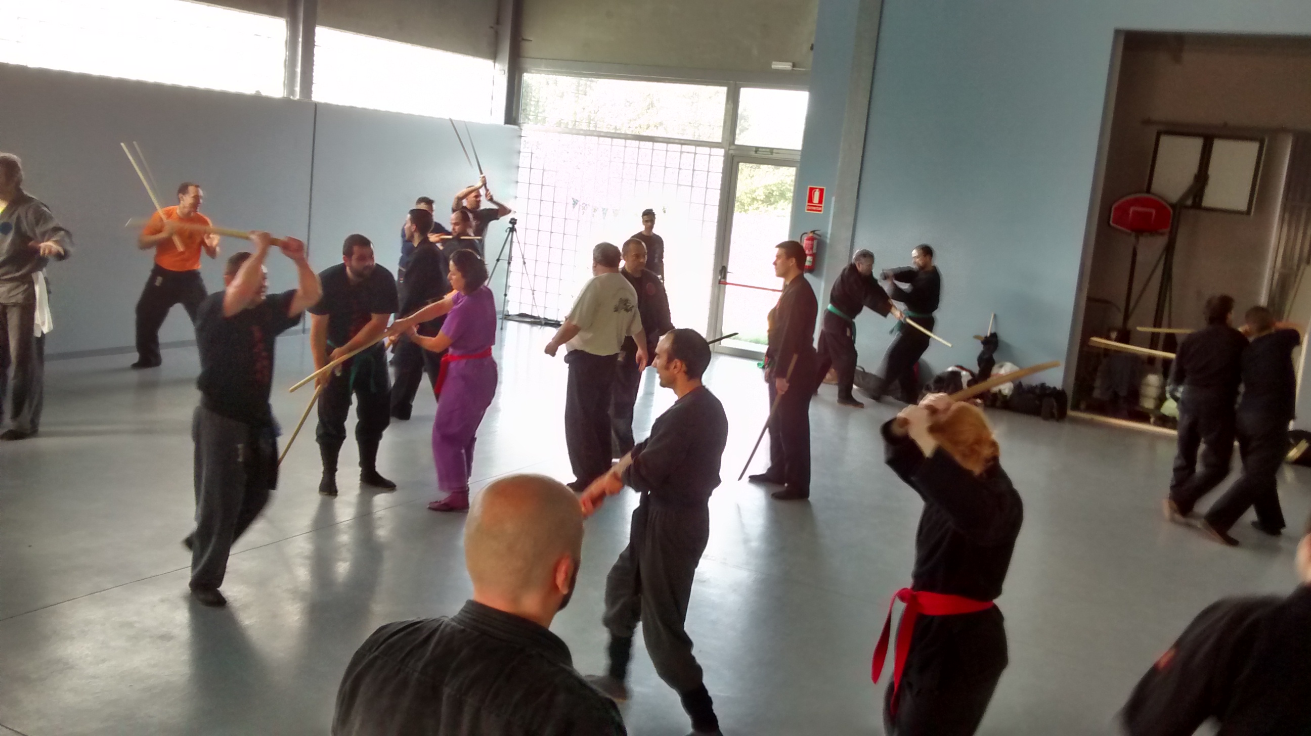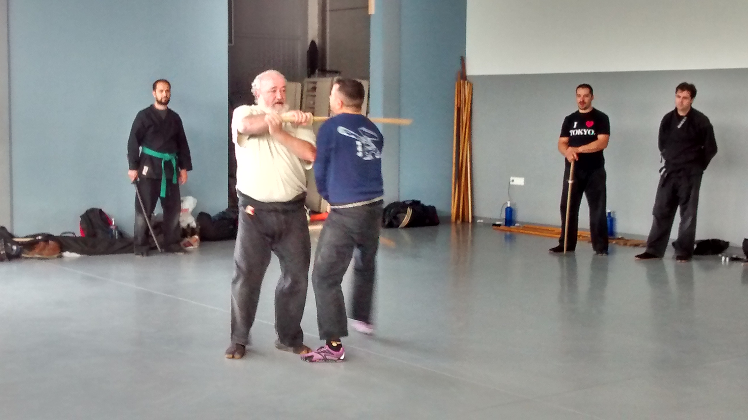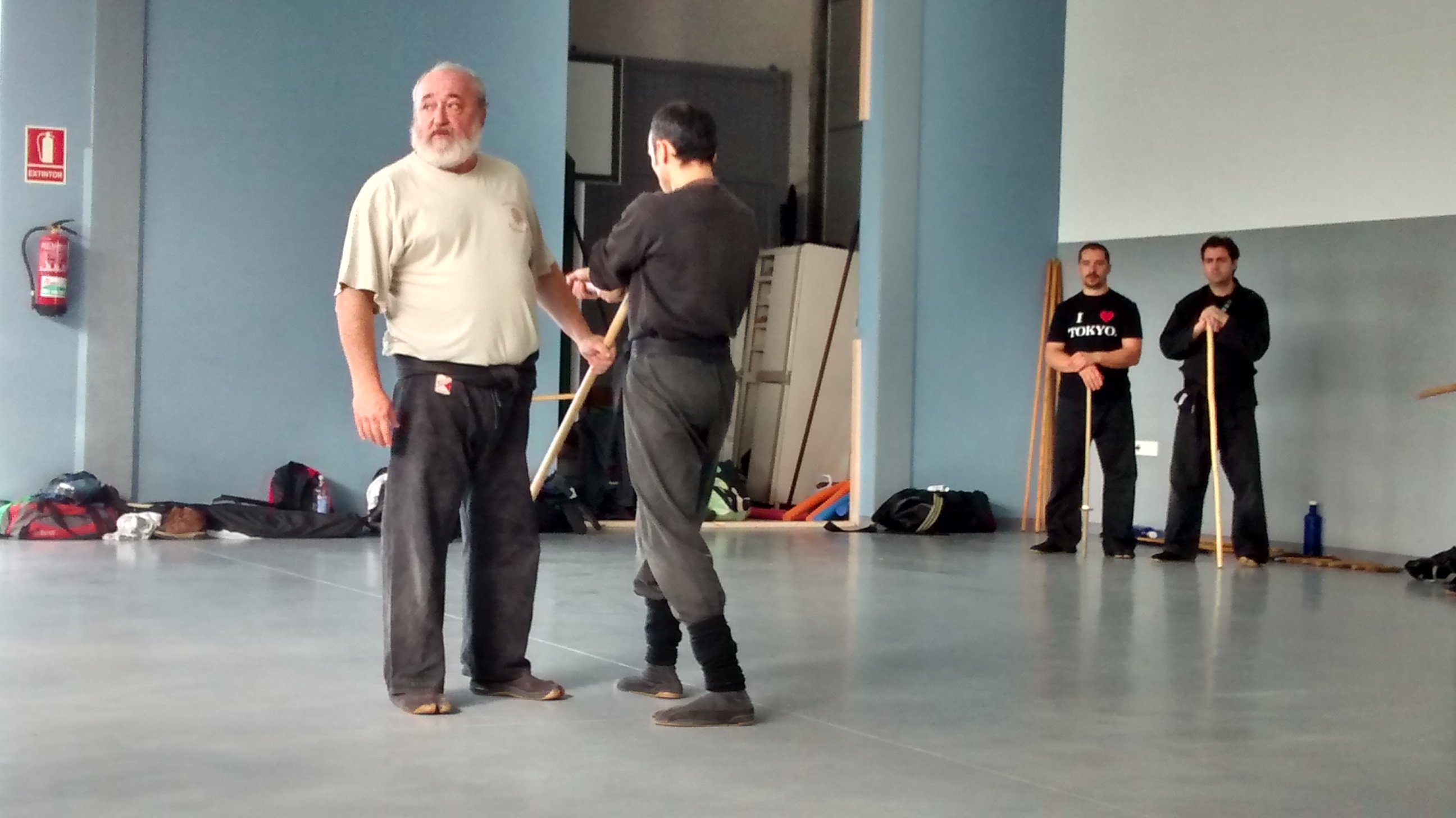 La temática propuesta para el seminario era «Combate en distancia corta». Isidoro ha desarrollado la misma con una gran creatividad, comenzando por el combate sin armas, siguiendo con el uso e kakushi buki, para finalizar con el uso de armas largas en distancias cortas.